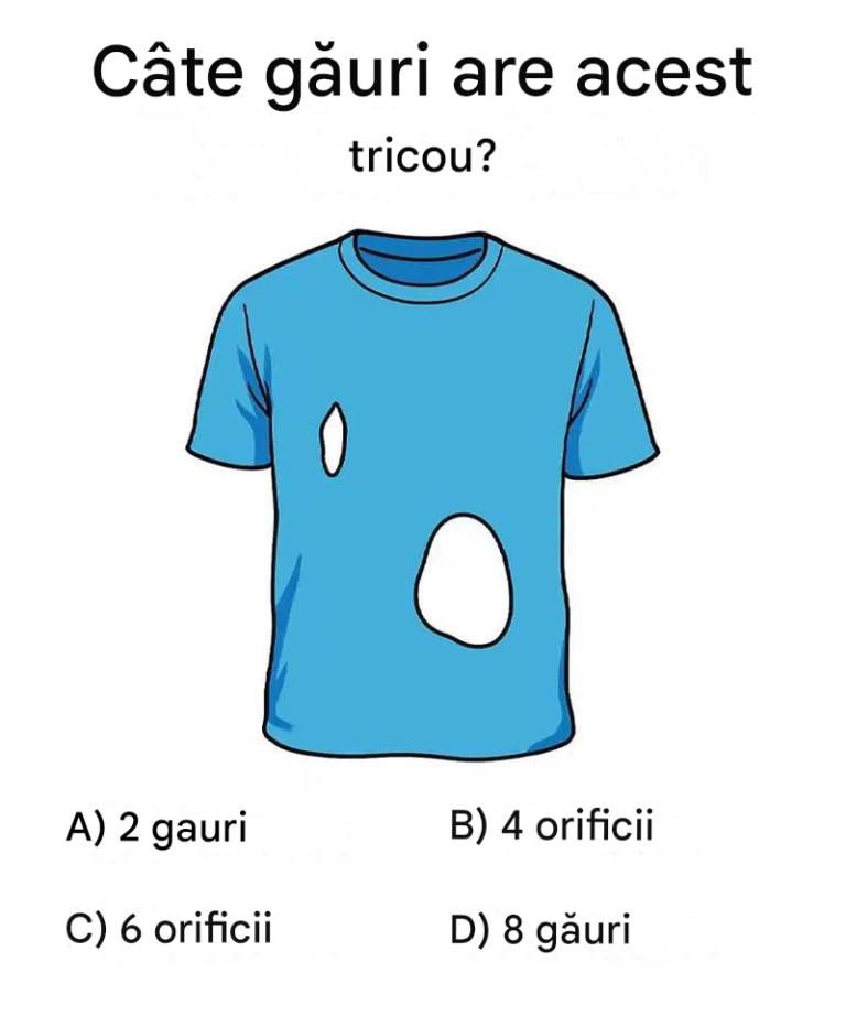 Tricoul din imagine pare uzat și plin de găuri. Majoritatea oamenilor observă rapid câteva deschideri evidente: